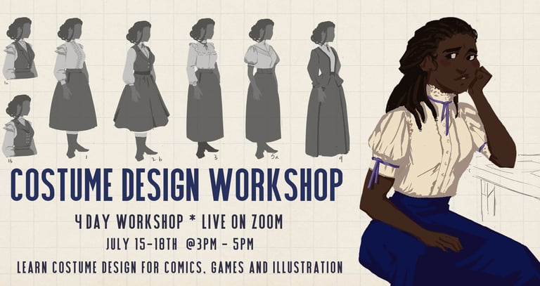 Do you love drawing characters from your favorite games, shows, or comics? Learn how costume design helps bring characters to life in film, games, and 3D animation. In this workshop, you’ll explore how clothing communicates personality, worldbuilding, and story.